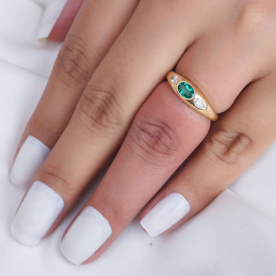 Emerald Oval Diamond Pear Mini Chunky Ring