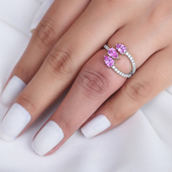 Pink Sapphire Diamond Three Pear Ring