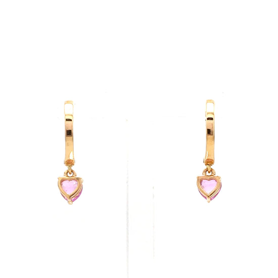 Pink Sapphire Heart Mini Huggies Earrings