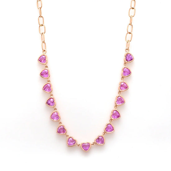 Pink Sapphire Heart Paperclip Chain Necklace