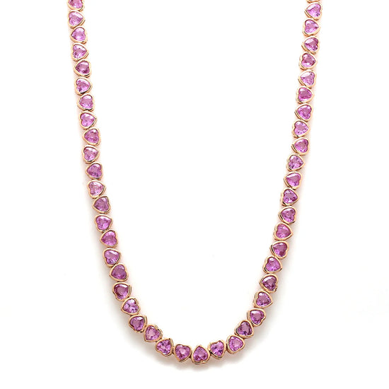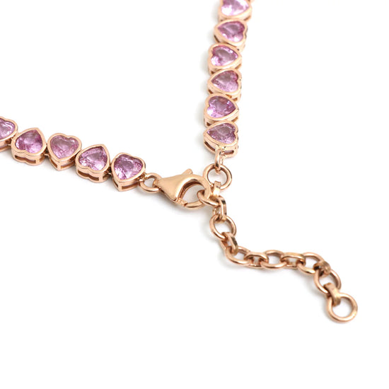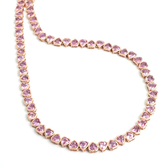 Pink Sapphire Upside Down Heart Tennis Necklace