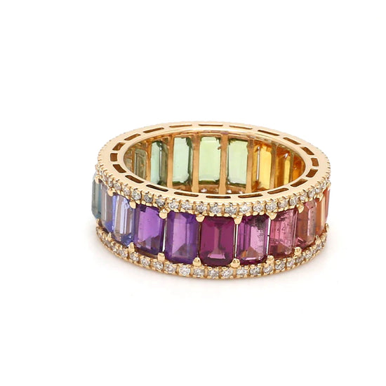 Rainbow Gemstone Octagon and Diamond Ring