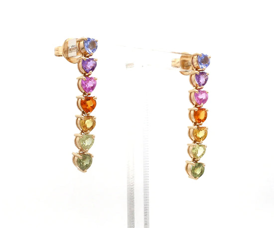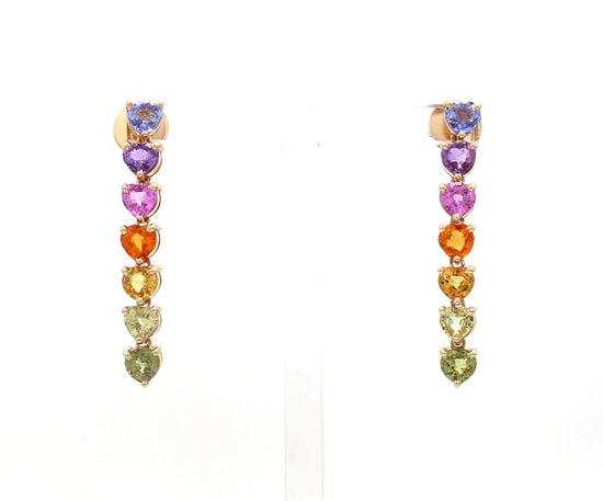 Rainbow Sapphire Heart Dangle Earrings