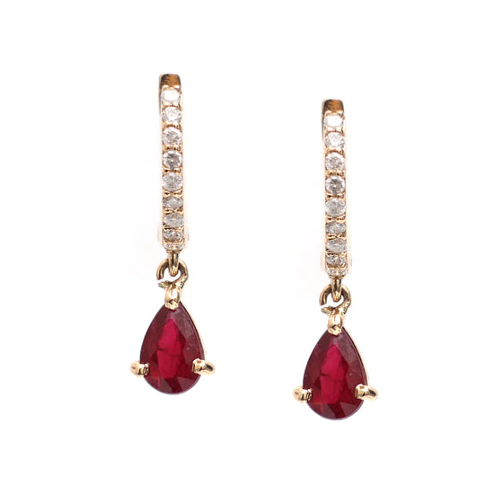 Ruby Pear Diamond Mini Huggies Earrings